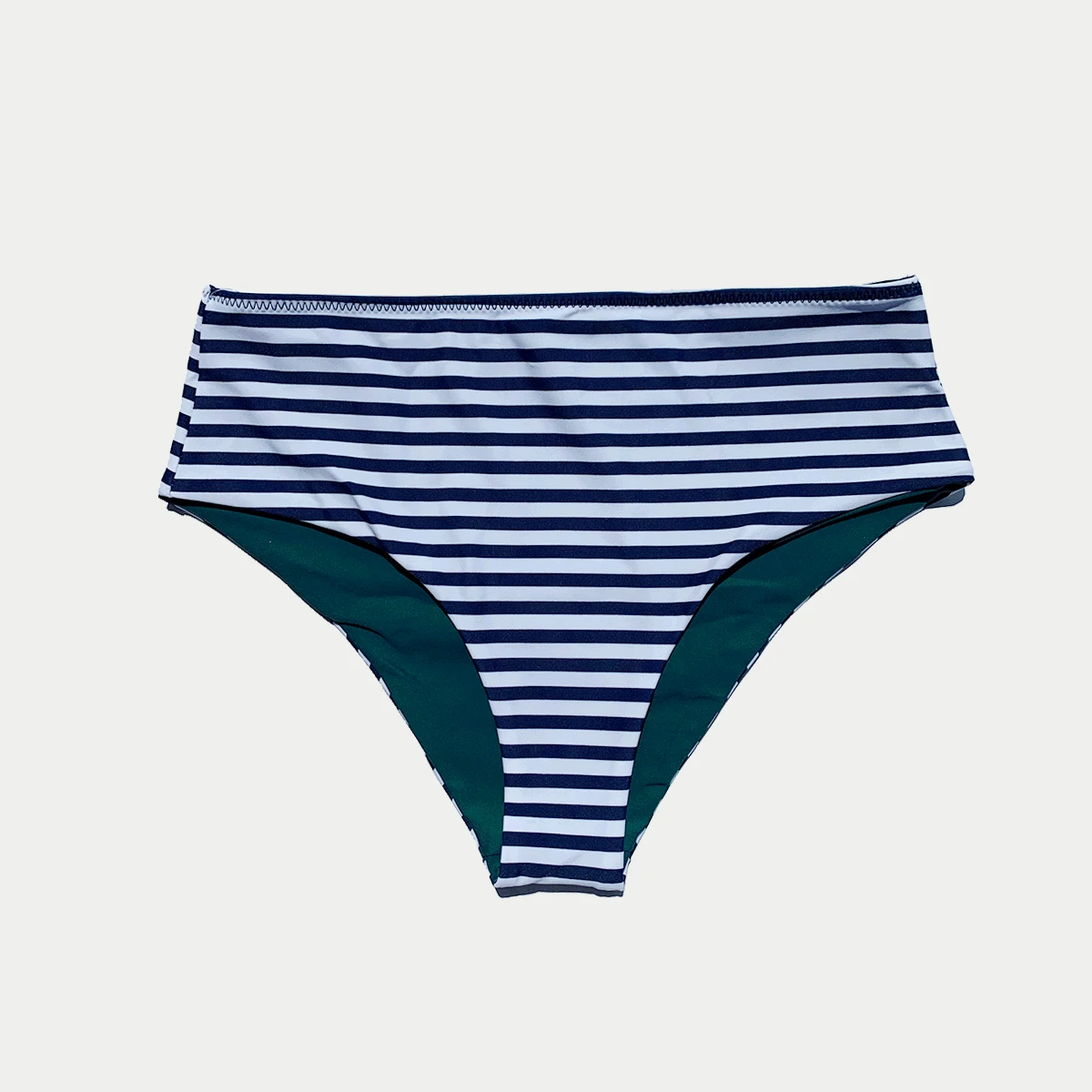 It’s all about balance. The Brasilia High Waist Bikini Bottom has a higher leg cut that visually lengthens your legs, balanced by a high waist to create a classy vintage silhouette.