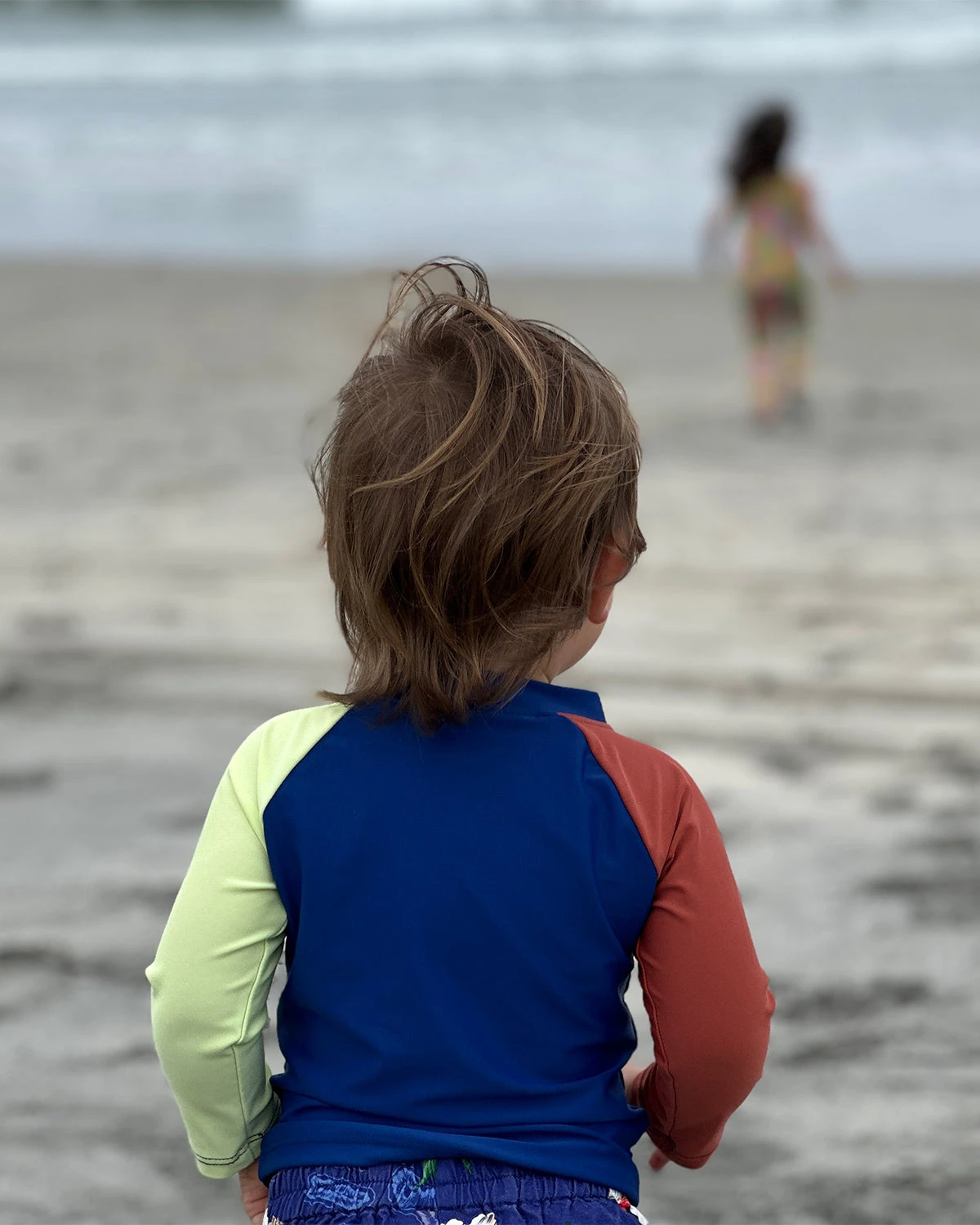 i Rashguard for kids makes it easy to keep delicate young skin protected from the sun. More effective than slippery sunscreen alone, the Doheny’s color-blocked raglan sleeves, comfortable neck opening, and slim performance fit all add up to this top being a surf and watersports essential.
