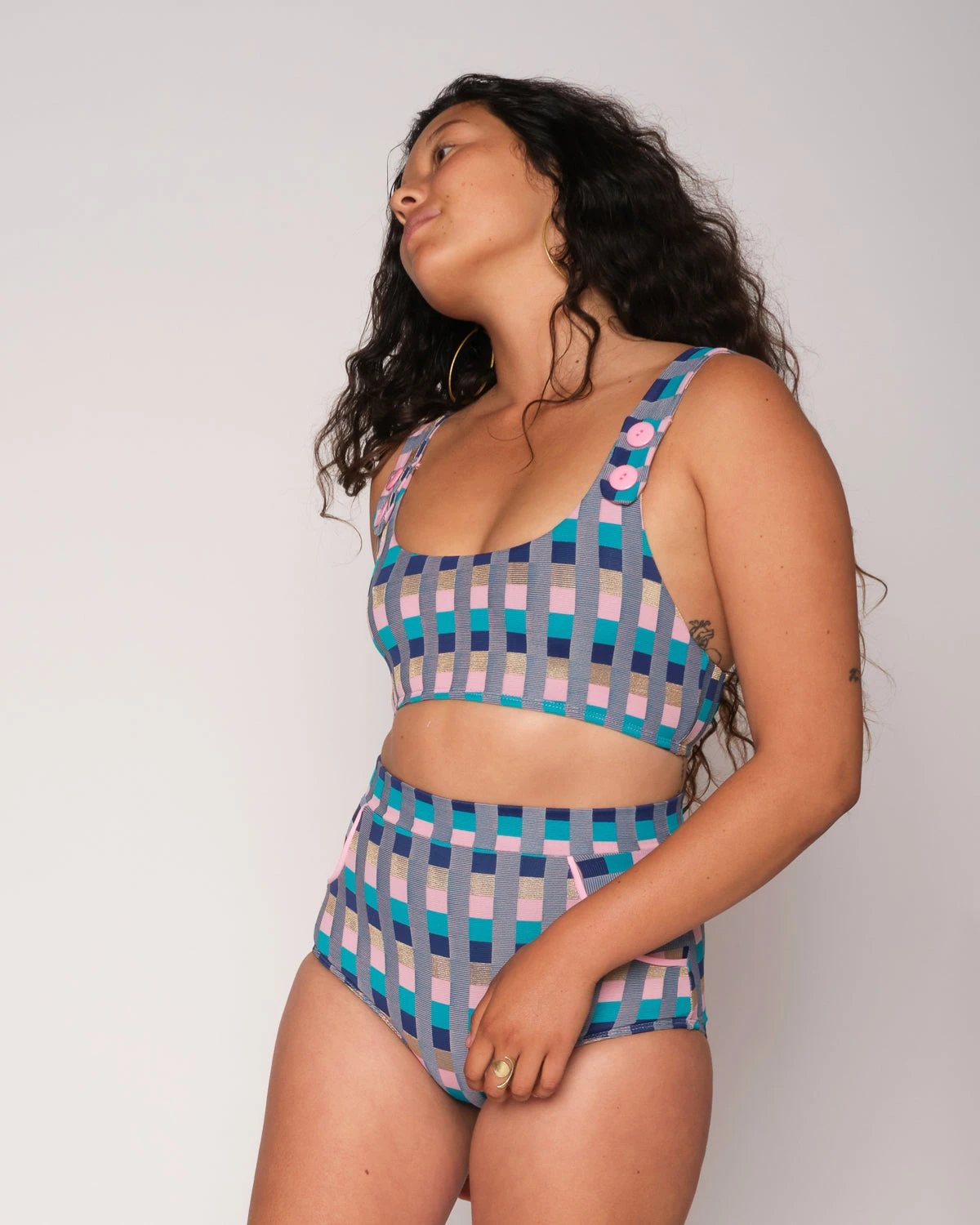 Under a striped beach umbrella or perched in trim, the Georgia Bikini Top radiates vintage femininity. With a delicate scoop neckline, fuller coverage, and supportive straps, this beauty is both comfortable and lovely.