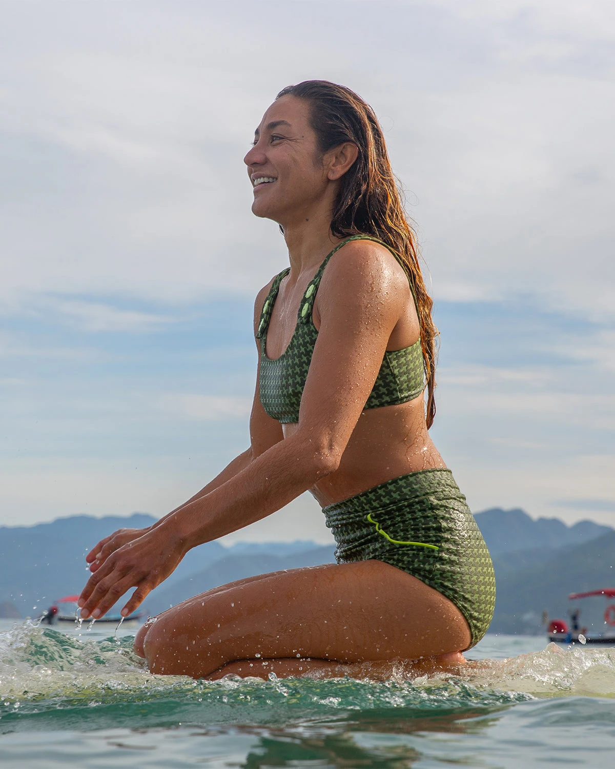 Under a striped beach umbrella or perched in trim, the Georgia Bikini Top radiates vintage femininity. With a delicate scoop neckline, fuller coverage, and supportive straps, this beauty is both comfortable and lovely.
