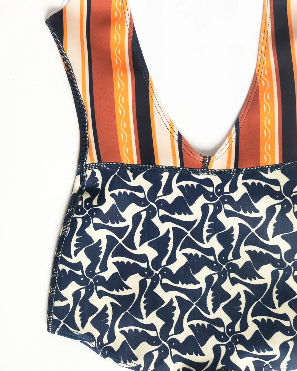 Our most beloved Lido One-Piece now sized for daughters and little sisters. The simple color blocked design in thicker C-Skin fabric provides a touch of extra warmth and protection while playing by the seashore.